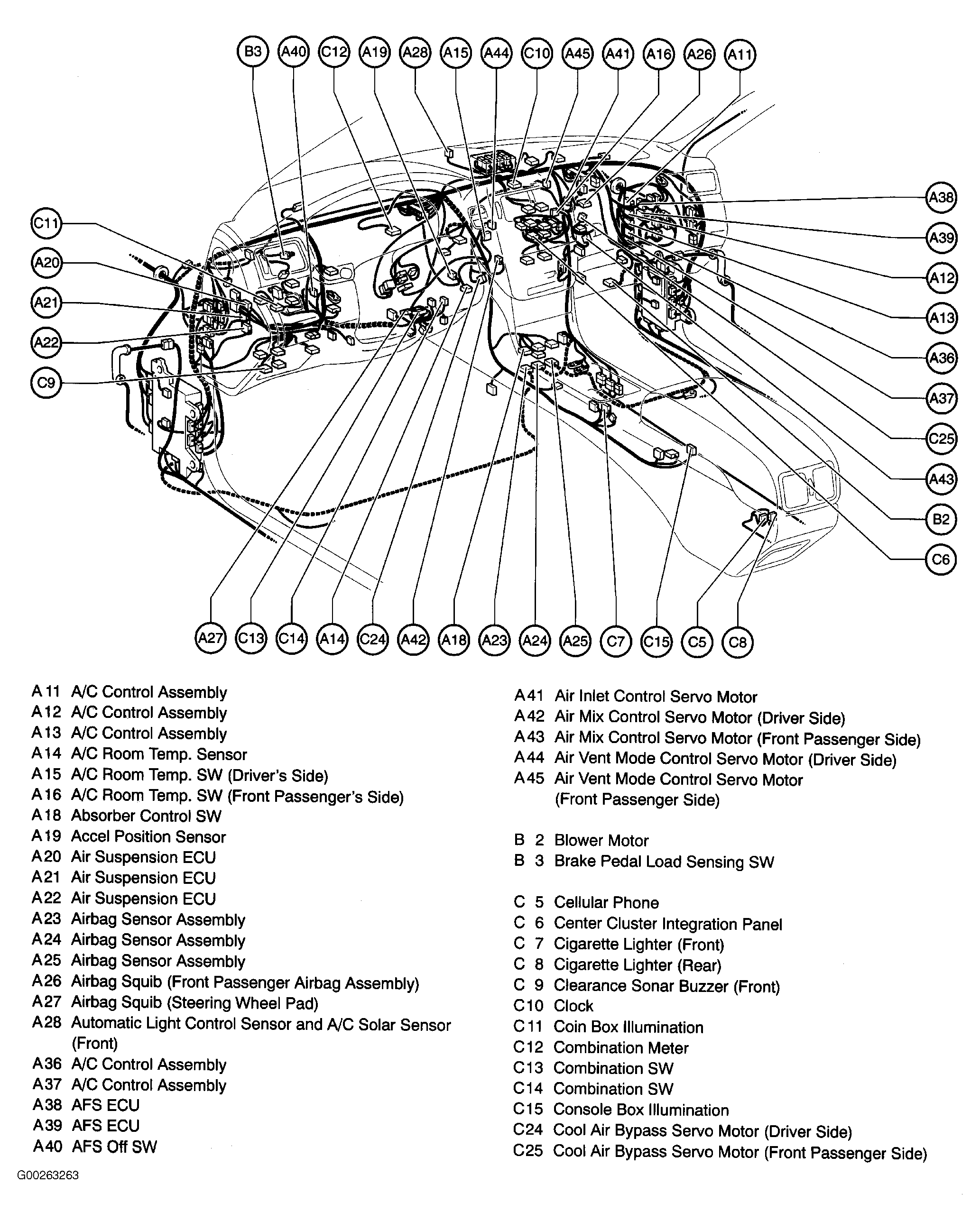 | Air Suspension ECU | Behind right side of dash. See Figure. |
