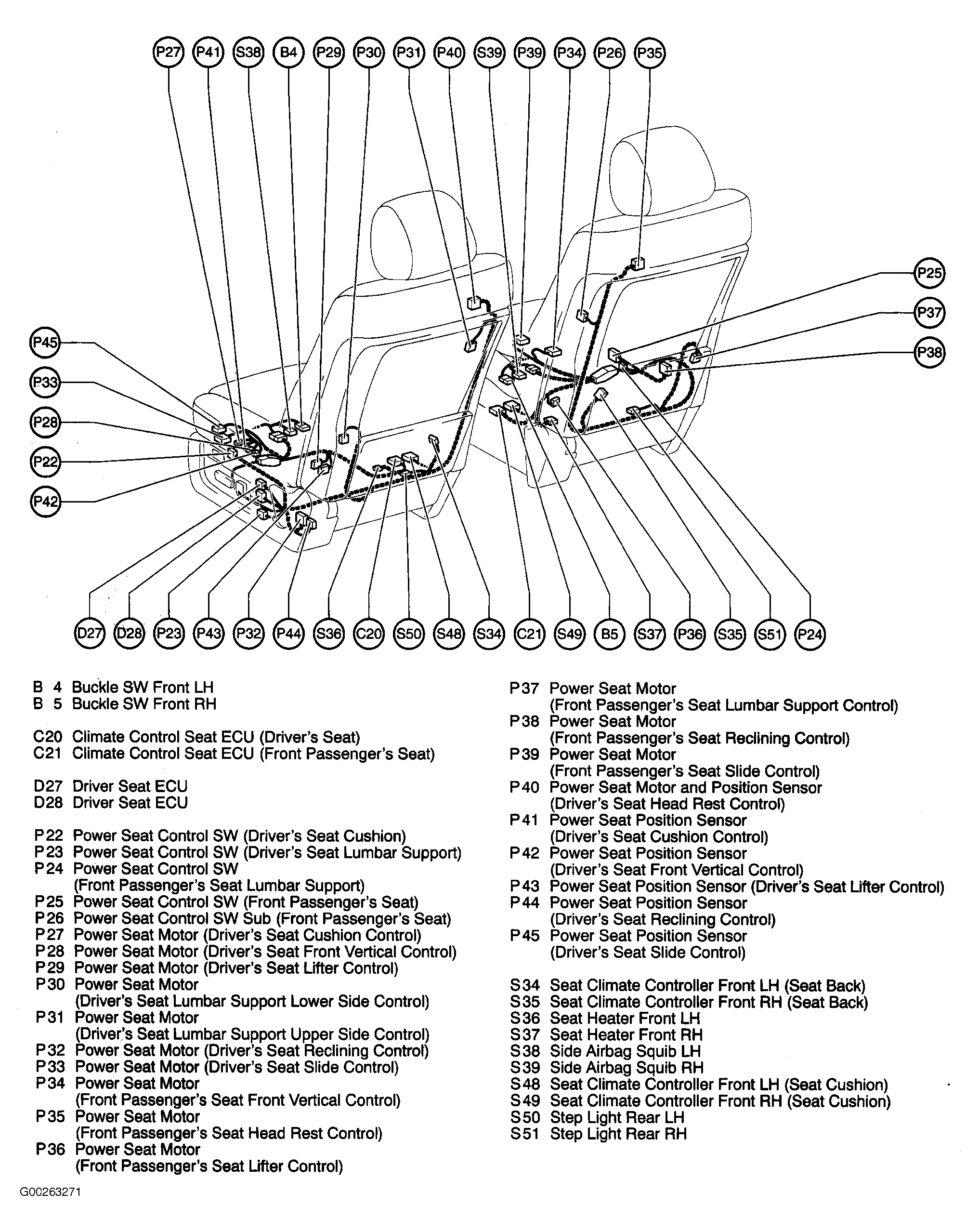 | Climate Control Seat ECU (Front Passenger's Seat) | Under front passenger's seat. See Figure. |
