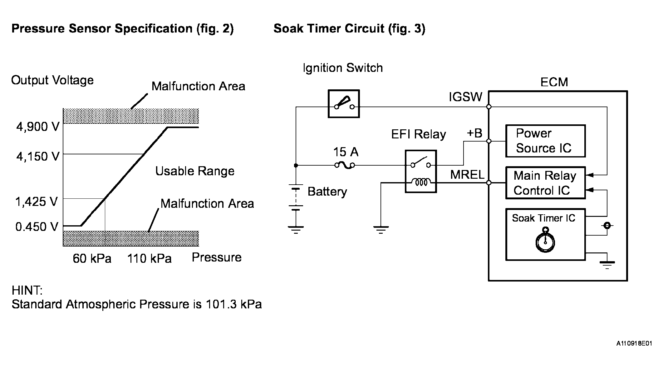 Fuel tank pressure sensor Converts fuel tank pressure into voltage and outputs that voltage. ECM supplies a constant voltage of 5 V to pressure sensor and uses feedback from sensor to monitor fuel tank pressure. (Fig 5)