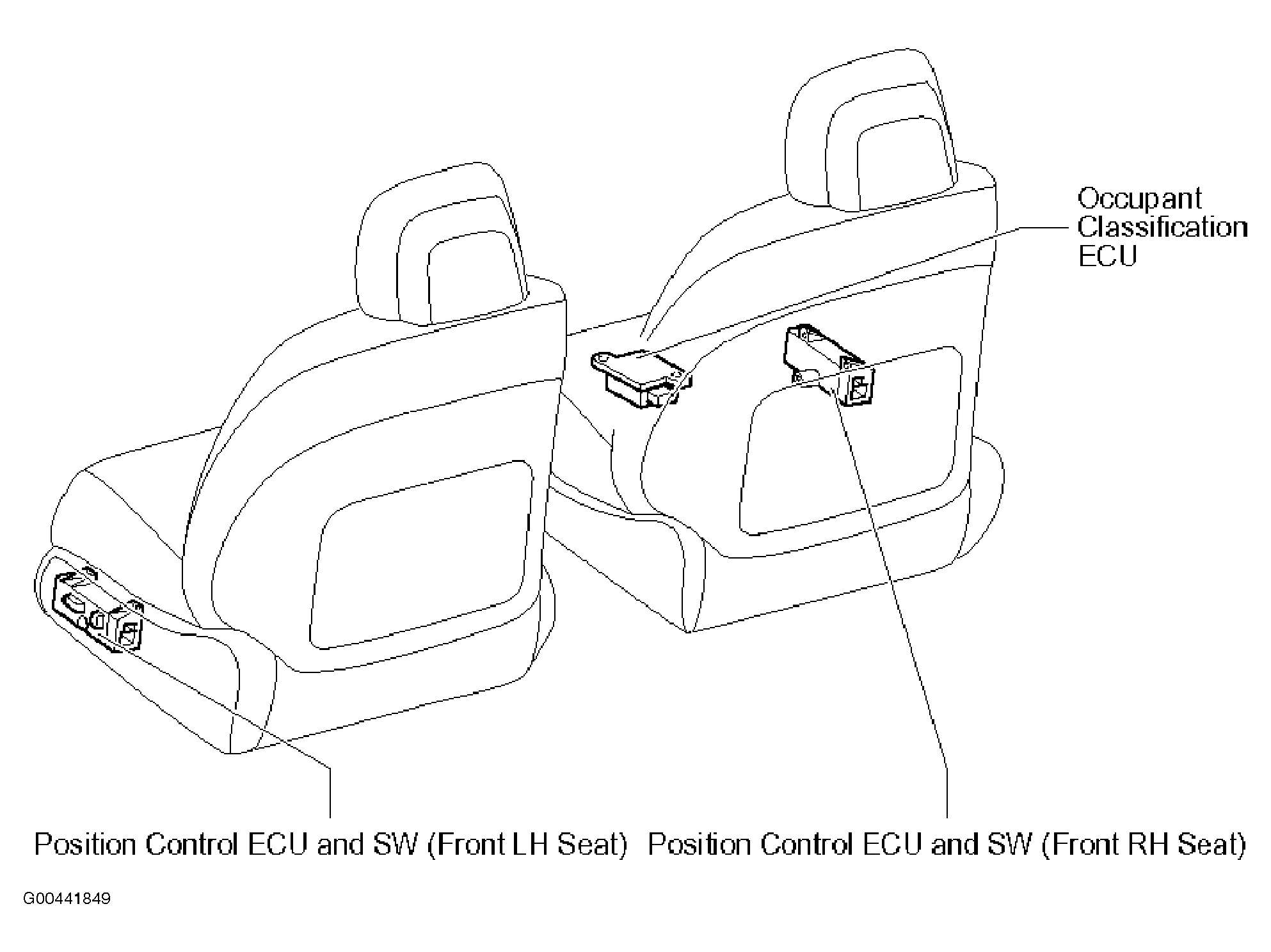 | Position Control ECU & SW (Front RH Seat) | In front passenger's seat. See Figure. |