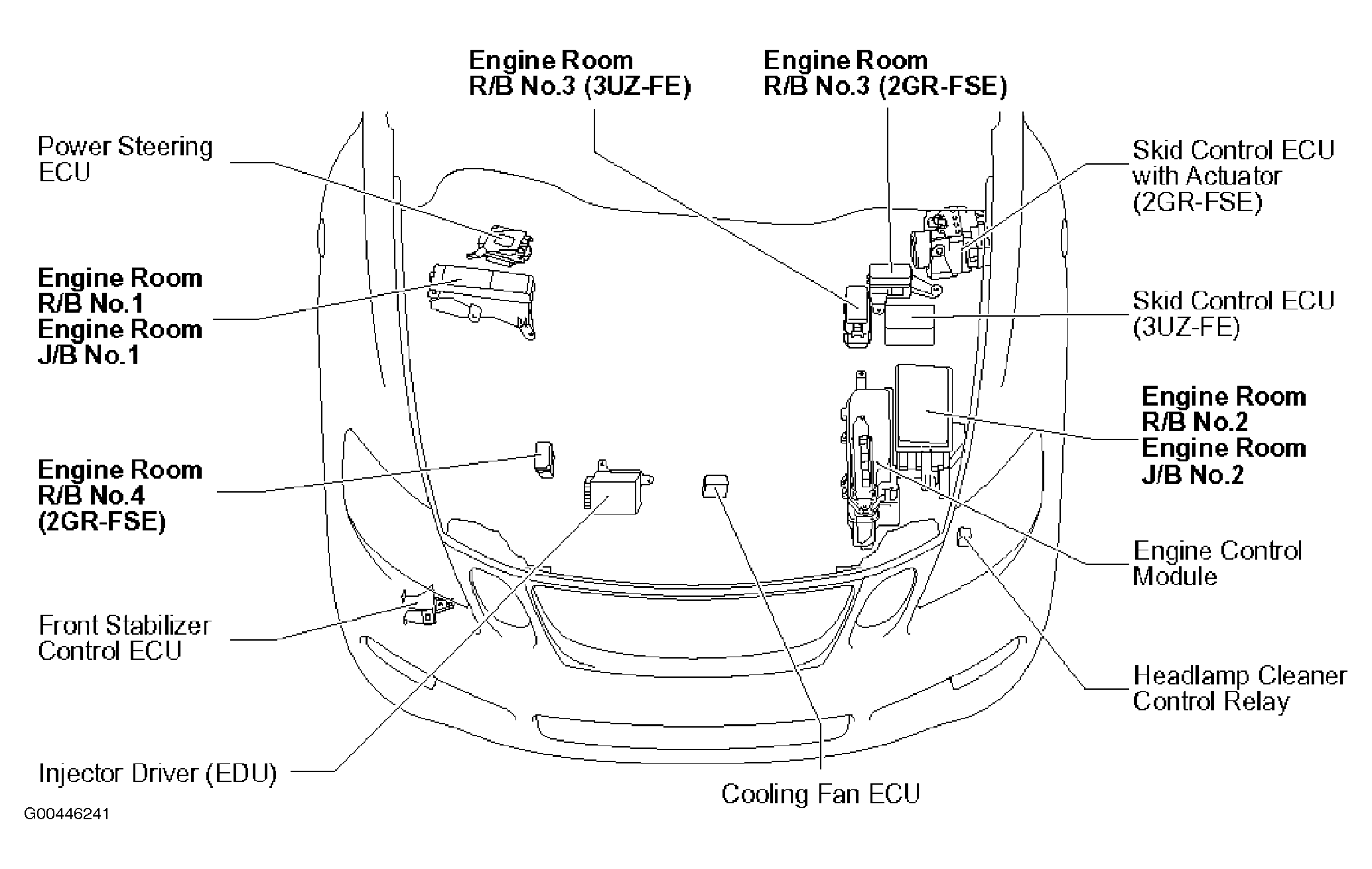 | Engine Room R/B No. 2 | Left side of engine compartment. See Figure. |