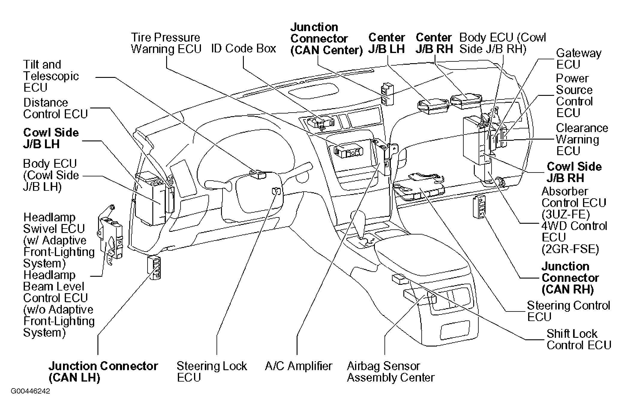 | Center J/B LH | Behind right side of dash. See Figure. |