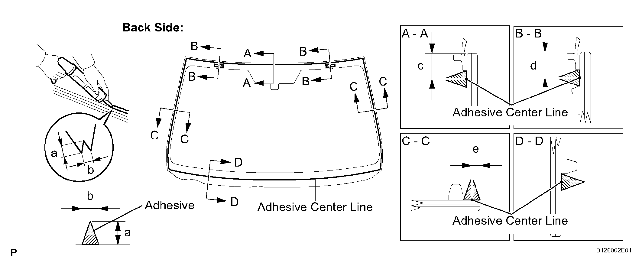WINDSHIELD GLASS ADHESIVE DAM STANDARD DIMENSION TABLE