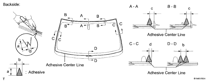 - Place matchmarks on the glass and vehicle body on the locations indicated in the illustration.