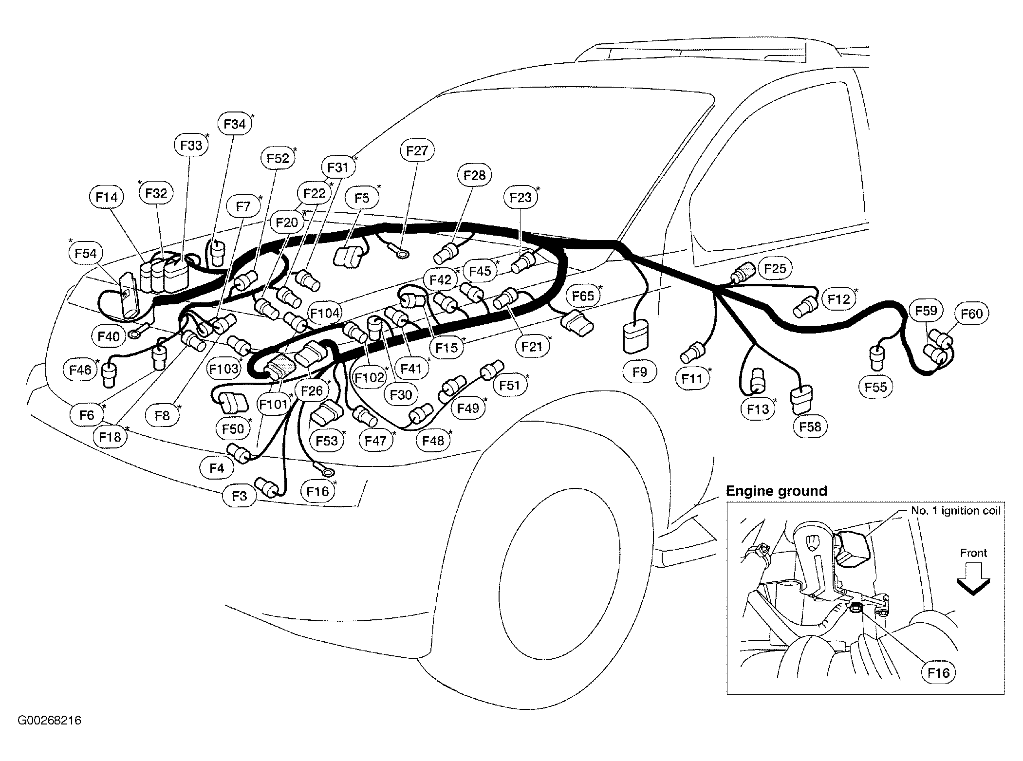 | Transfer Control Device (4WD) (F58) | At top front of transmission. See Figure . |
