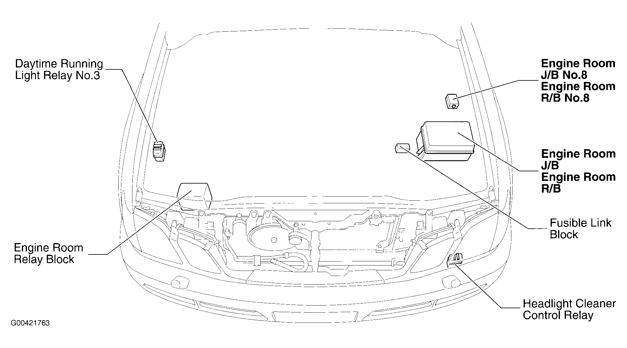 | Engine Room J/B No. 8 | Left side of engine compartment. See Figure. |