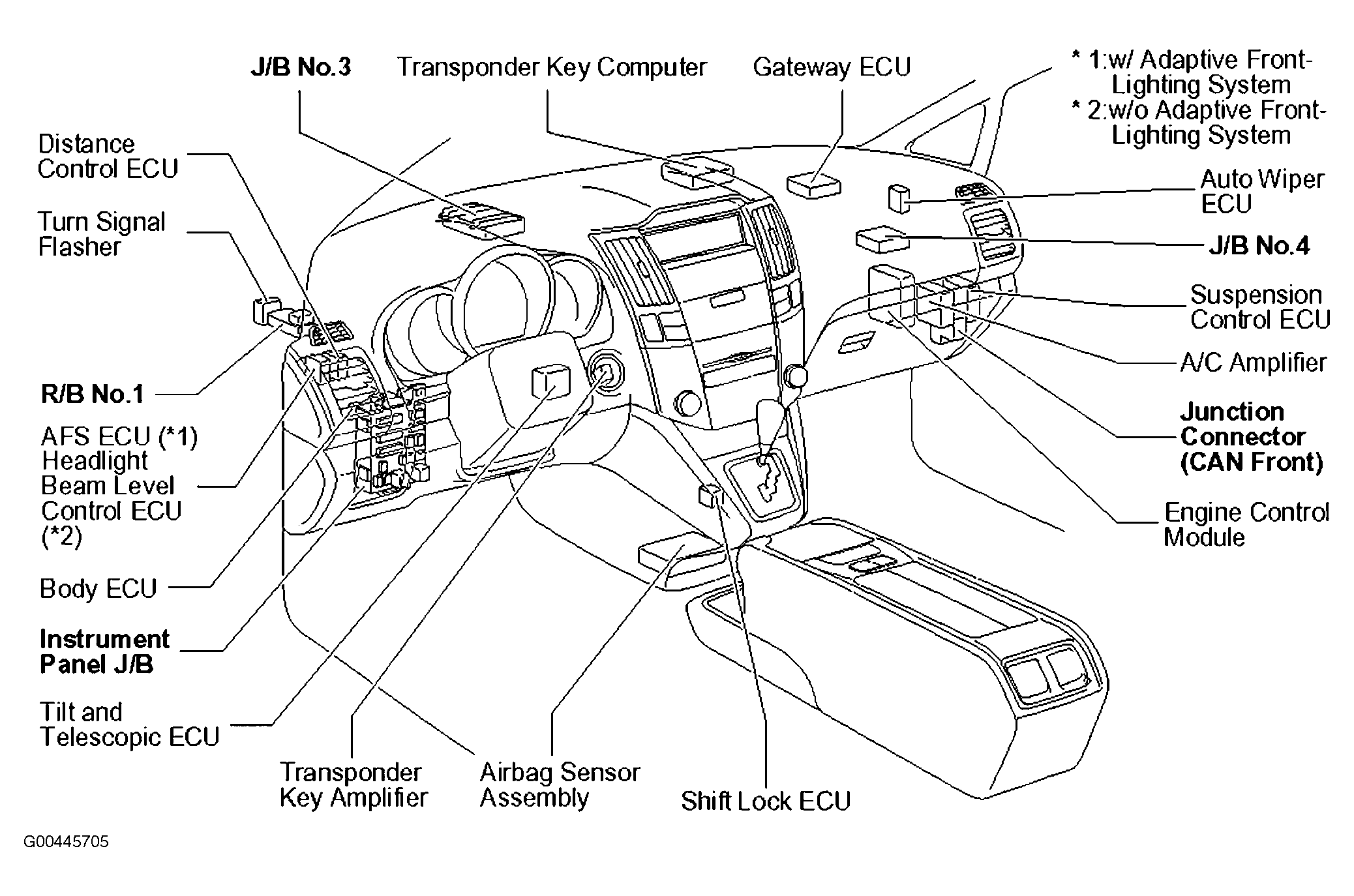 | R/B No. 1 | Behind left side of dash. See Figure. |