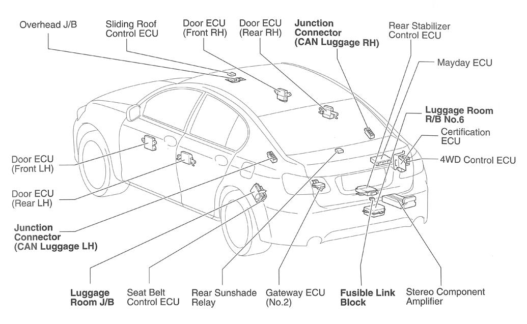 | Luggage Room R/B No. 6 | Right rear corner of luggage compartment. See Figure. |