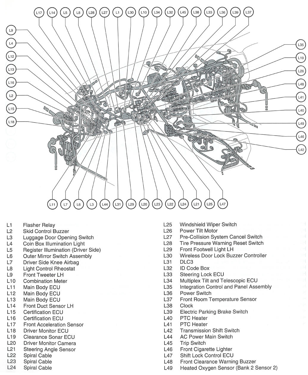 | Driver Monitor ECU | Behind left end of dash. See Figure. |