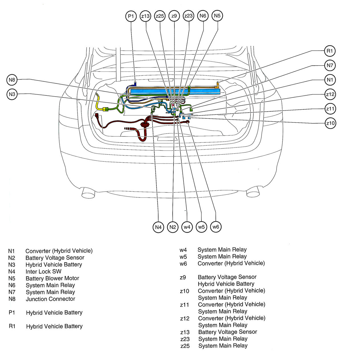 | System Main Relay | Center of luggage compartment. See Figure. |