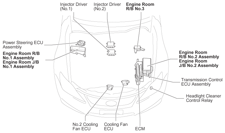 ENGINE ROOM R/B AND J/B NO.1 RELAY IDENTIFICATION