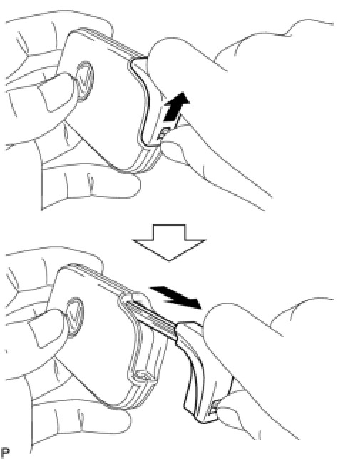 (a) Lightly hold and pull the transmitter cover out in the direction shown by the arrow in the illustration.