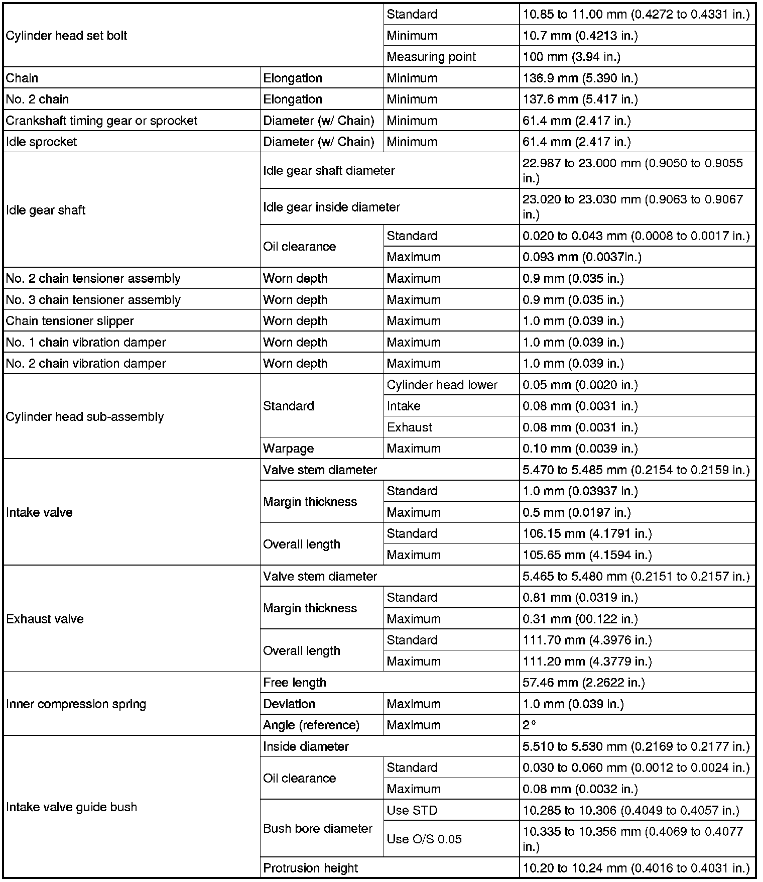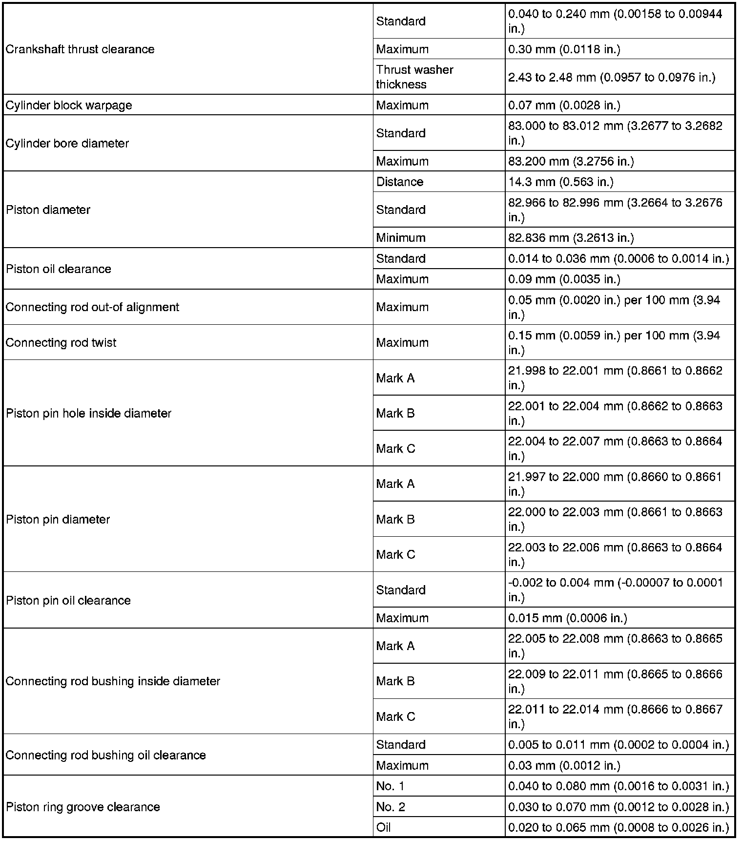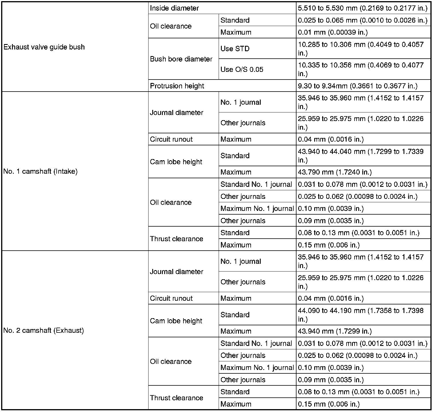 SERVICE SPECIFICATIONS: 4GR-FSE ENGINE MECHANICAL: SERVICE DATA