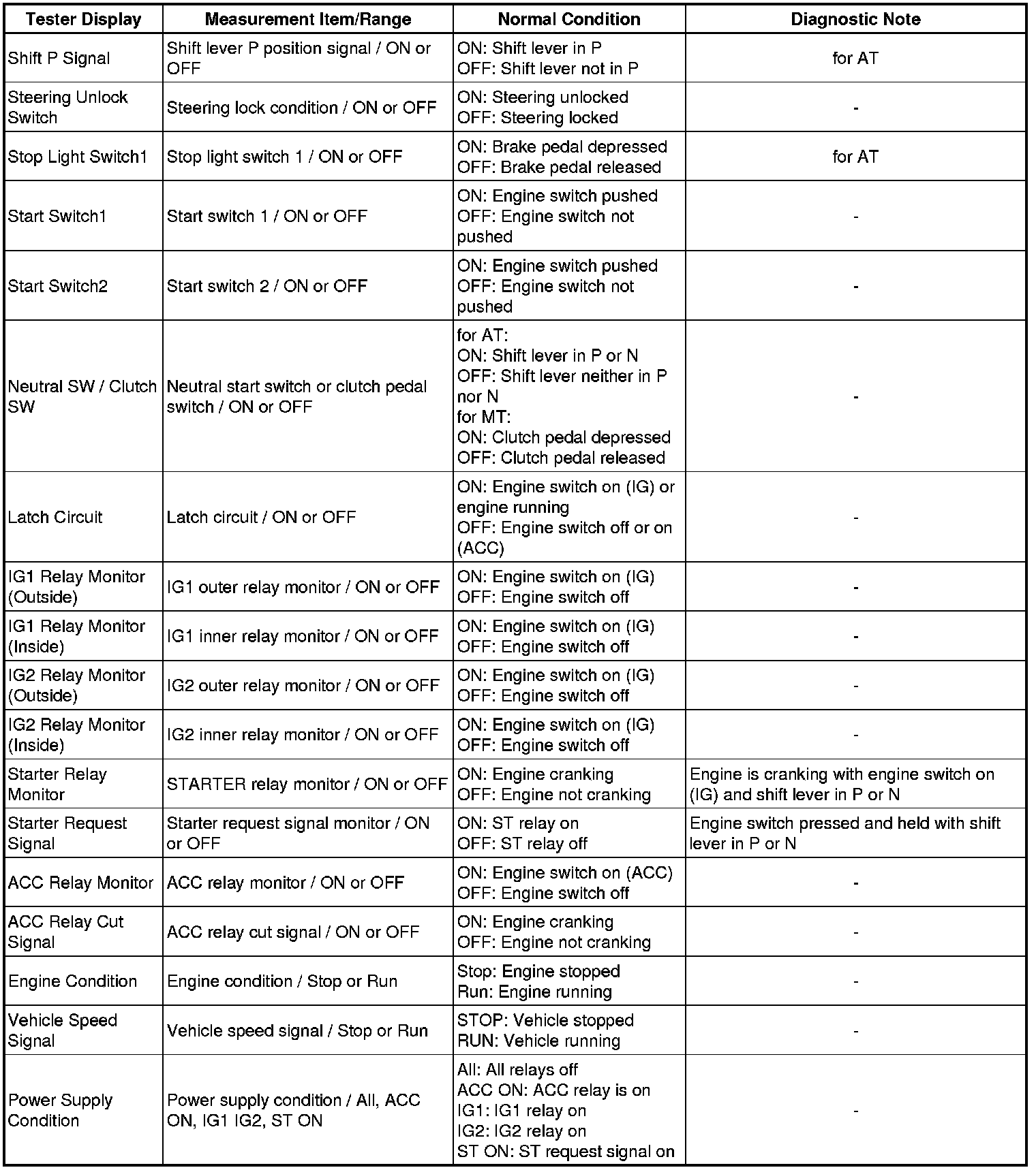THEFT DETERRENT / KEYLESS ENTRY: SMART ACCESS SYSTEM WITH PUSH-BUTTON START (for Start Function): DATA LIST / ACTIVE TEST