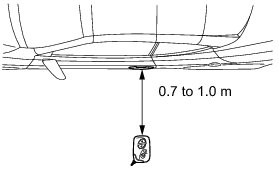 * Hold the key at the same height as the door outside handle (0.7 to 1.0 m (2.30 to 3.28 ft.)). Make sure that the direction of the key is as shown in the illustration.