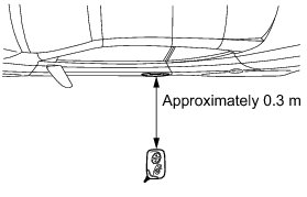 * When pressing the lock switch and touching the touch sensor, hold the key about 1 m (3.28 ft.) above the ground and about 0.3 m (0.984 ft.) away from the vehicle as shown in the illustration.