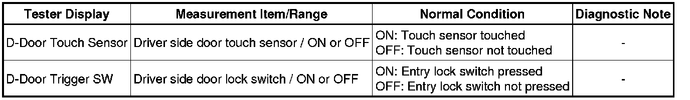 2. READ VALUE USING TECHSTREAM (DOOR OUTSIDE HANDLE)