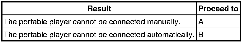 AUDIO / VIDEO: AUDIO AND VISUAL SYSTEM (w/o Navigation System without Multi-display): Portable Player cannot be Connected Manually/Automatically
