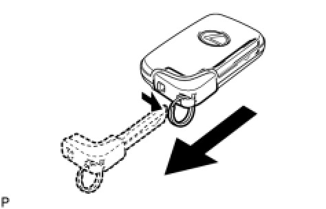 (a) Push and hold the release knob in the direction indicated by the arrow in the illustration. Then take the mechanical key out of the case.