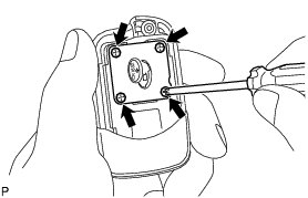* When replacing the transmitter battery, before starting work, remove static electricity that has built up in the body by touching, for example, the vehicle to prevent the electrical transmitter from being damaged.