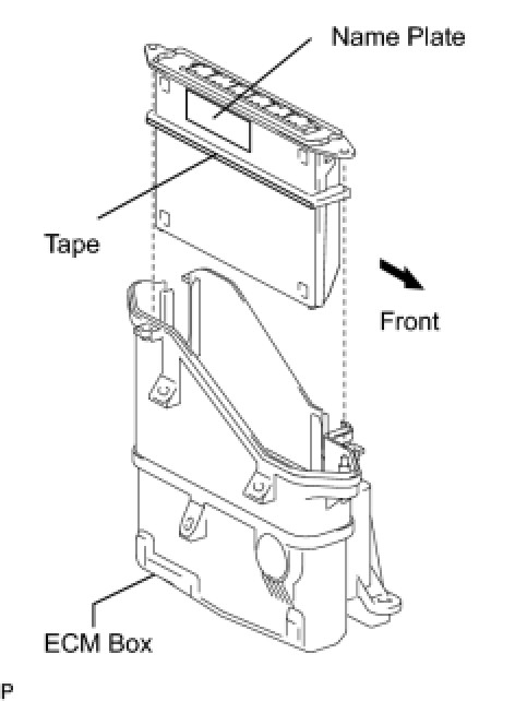 * Install the ECM to the ECM box with the name plate facing the inside of the vehicle.
