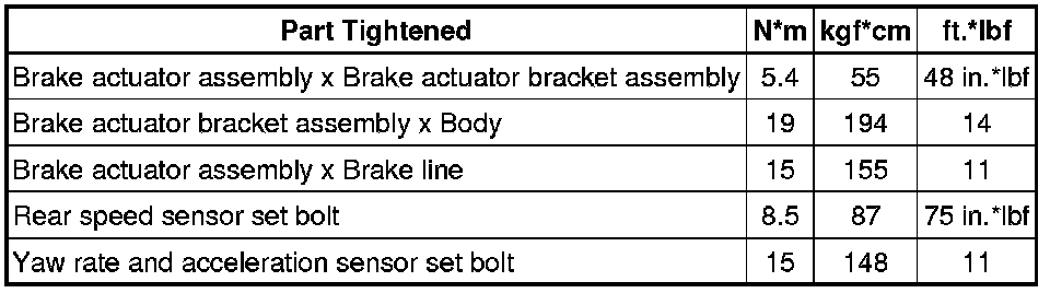 SPECIFICATIONS: BRAKE CONTROL / DYNAMIC CONTROL SYSTEMS: TORQUE SPECIFICATIONS