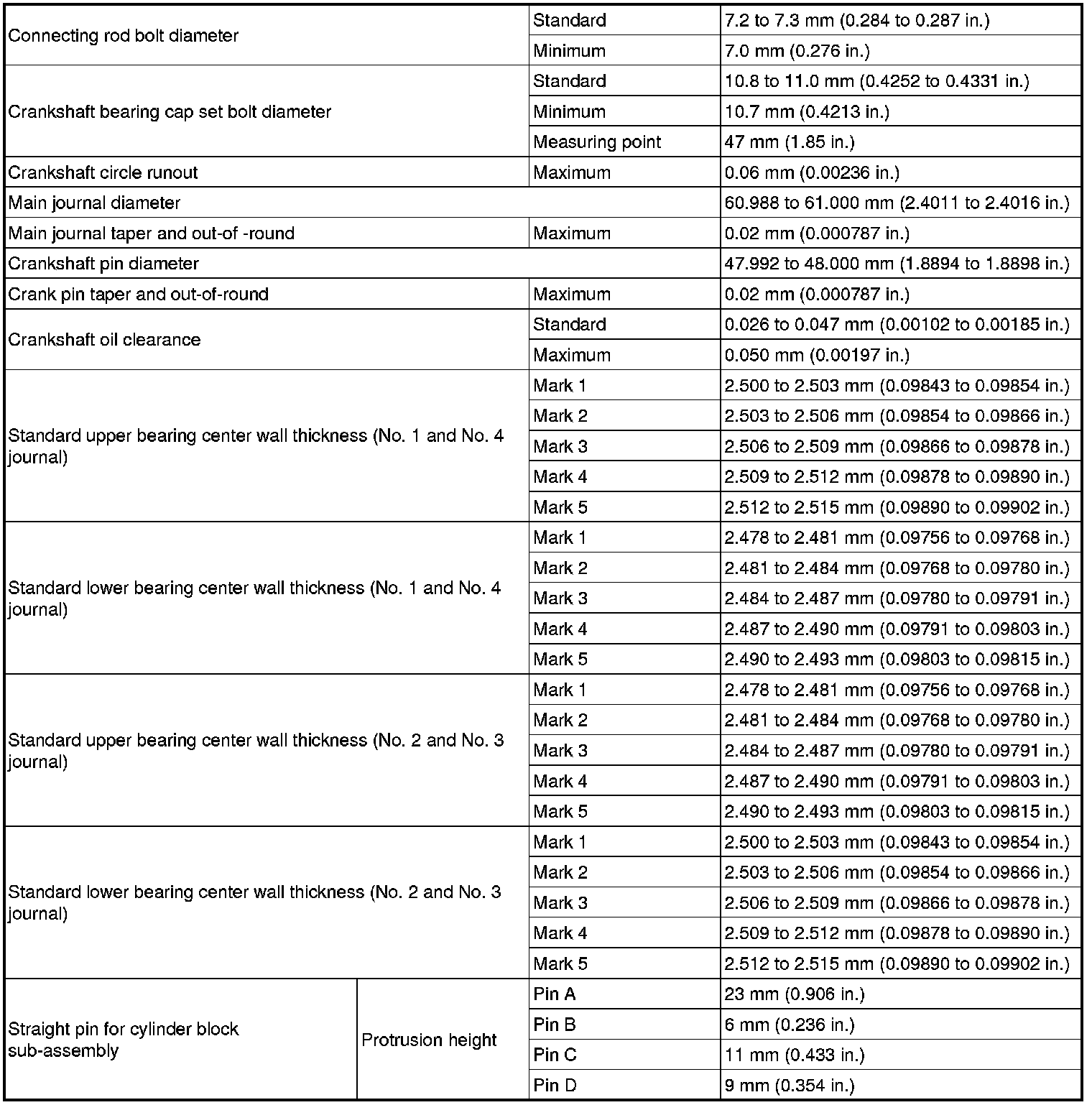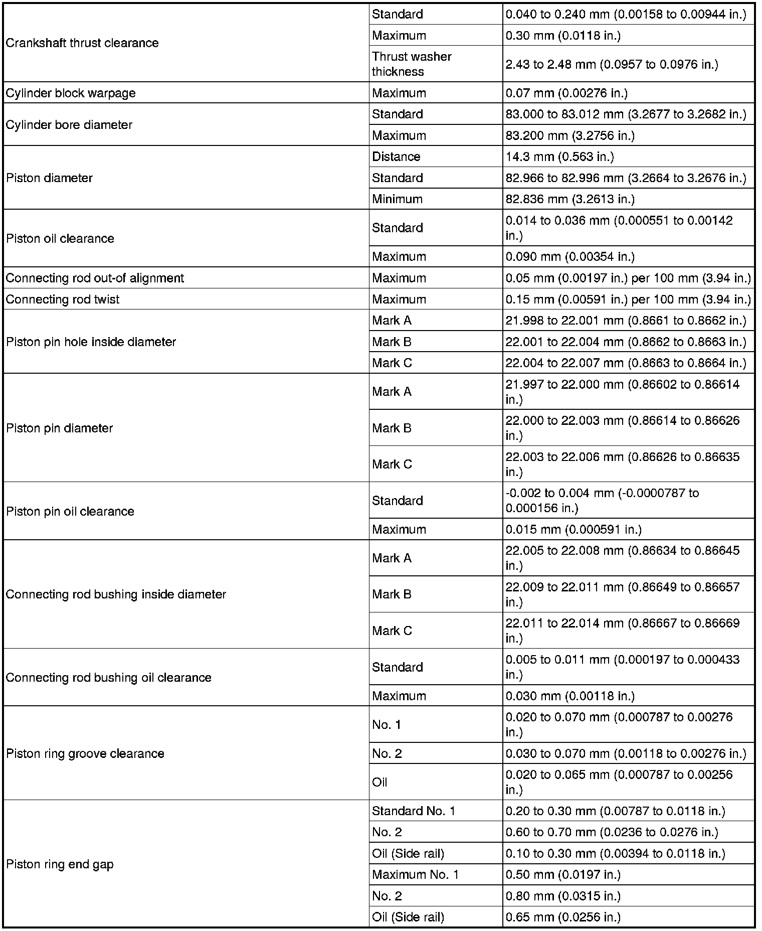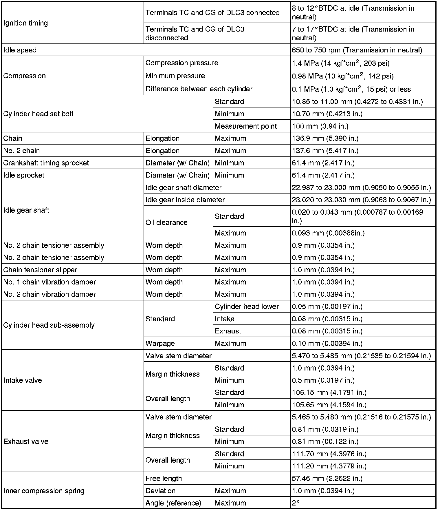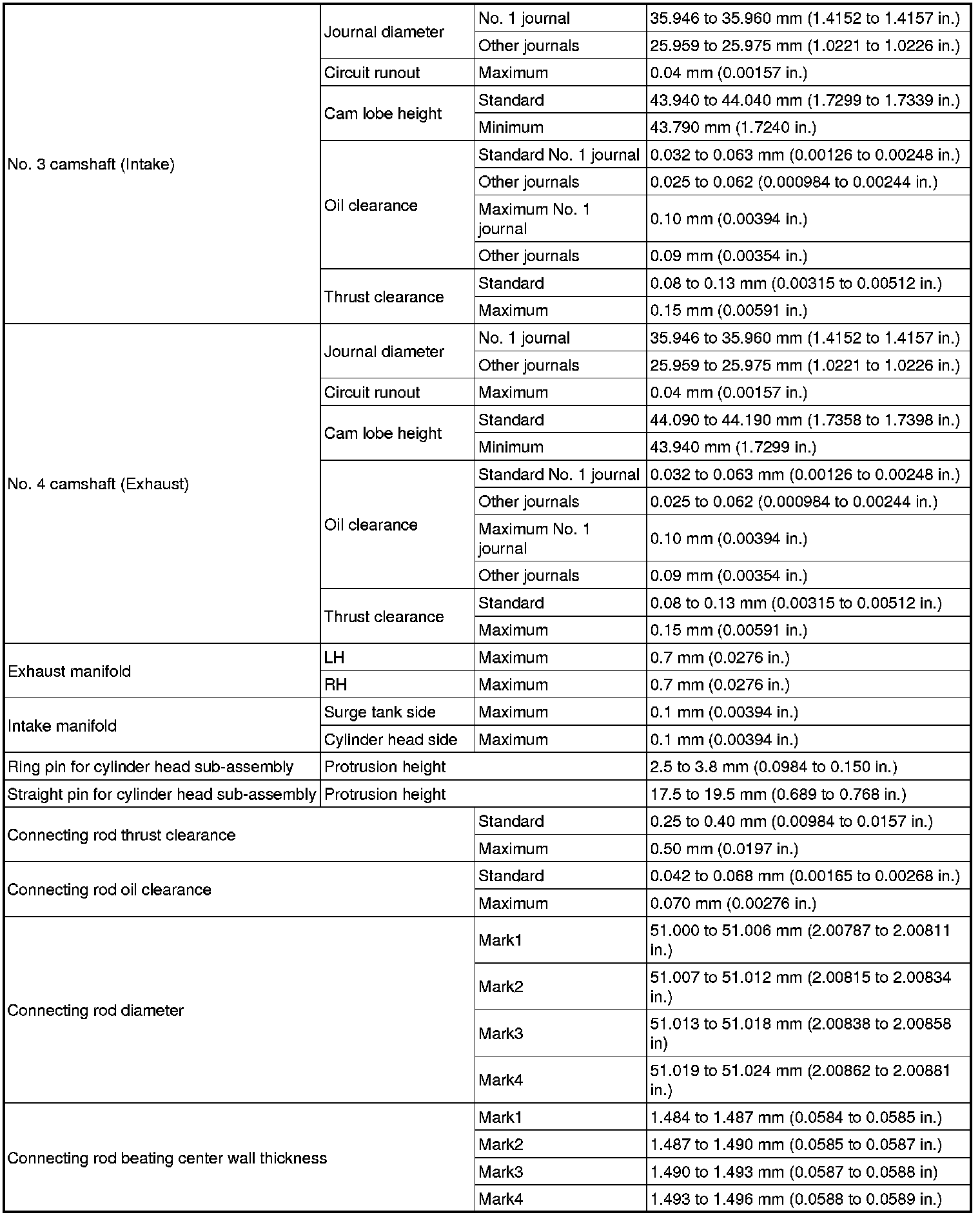 SPECIFICATIONS: 4GR-FSE ENGINE MECHANICAL: SERVICE DATA