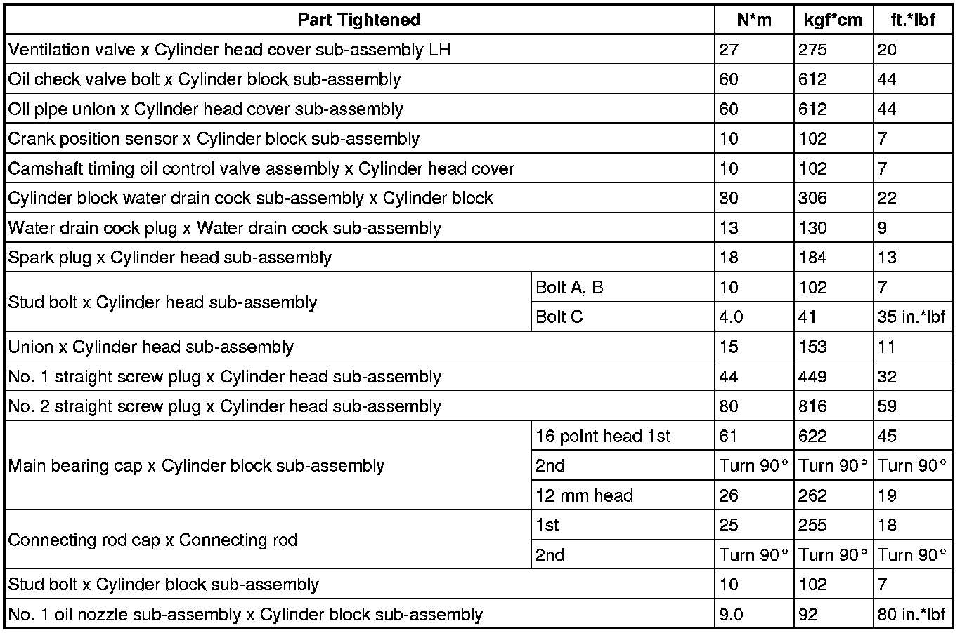 SPECIFICATIONS: 4GR-FSE ENGINE MECHANICAL: TORQUE SPECIFICATIONS