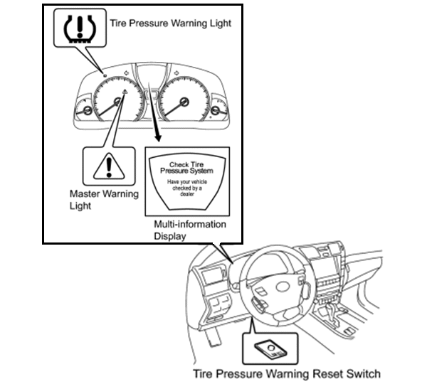 NOTE: Be sure to adjust the tire pressure to specification before initialization. See tire loading and pressure label on driver door jam. When the tire pressure warning system is initialized, the current tire pressure is set as the pressure benchmark.