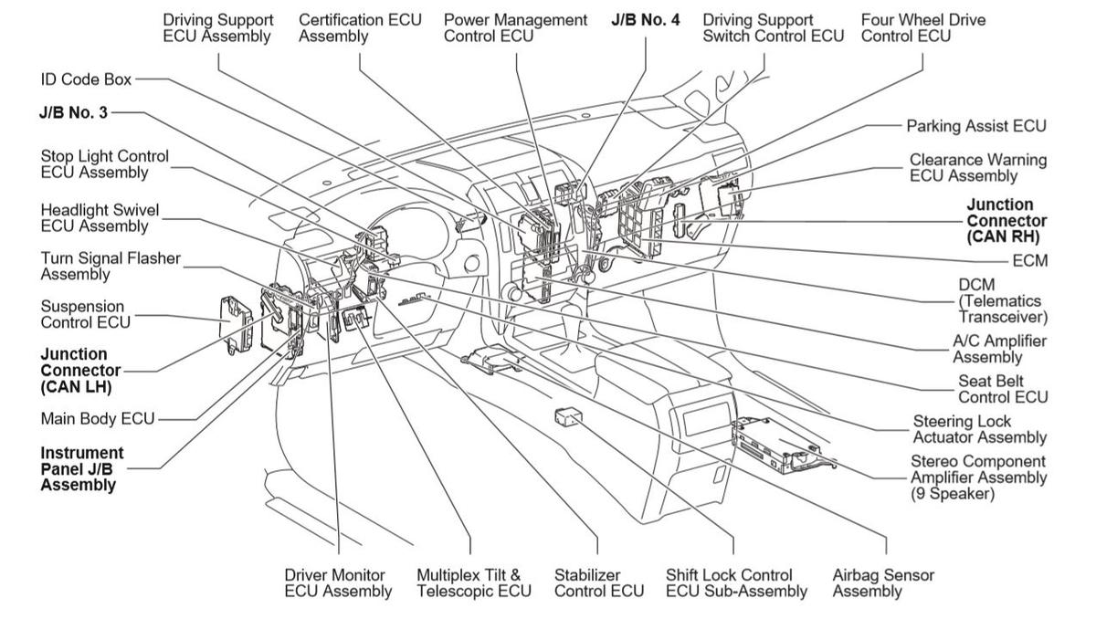 | 10A | IGN | ABS, A-TRAC, Brake Assist, Crawl, Downhill Assist Control, EBD, Hill-Start Assist Control, Multi-Terrain Select and VSC |