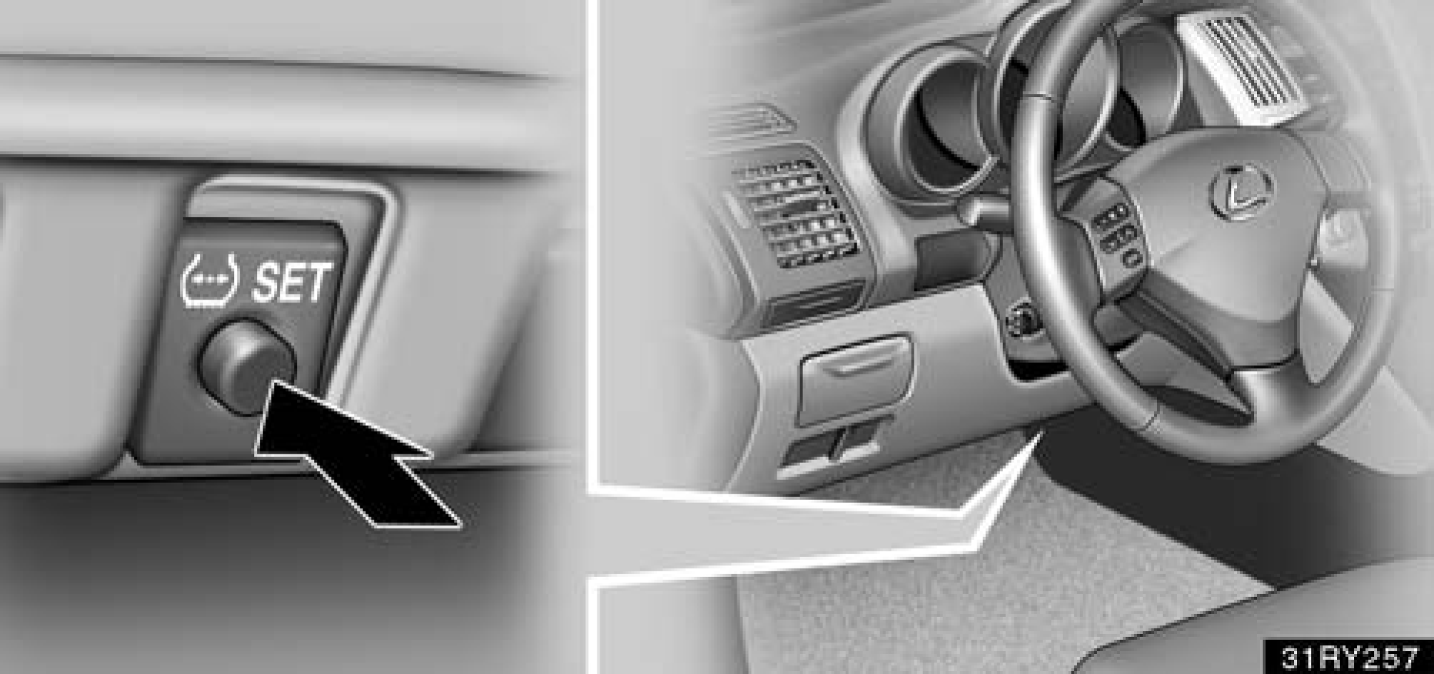 - Press and hold the tire pressure warning reset switch until the tire pressure warning light blinks 3 times at one-second intervals. See Fig 1