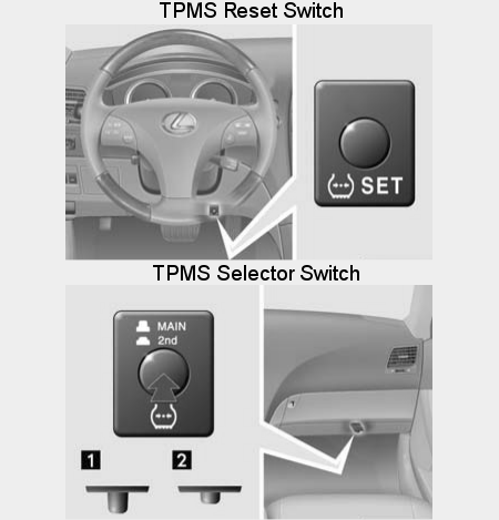 DO NOT push the reset switch without adjusting tire inflation pressure of all 4 tires. Otherwise, the low tire pressure warning light may not come on even if the tire pressure is low, or it may come on when the tire inflation pressure is actually normal. If you push the reset switch while the vehicle is moving, initialization is not performed.