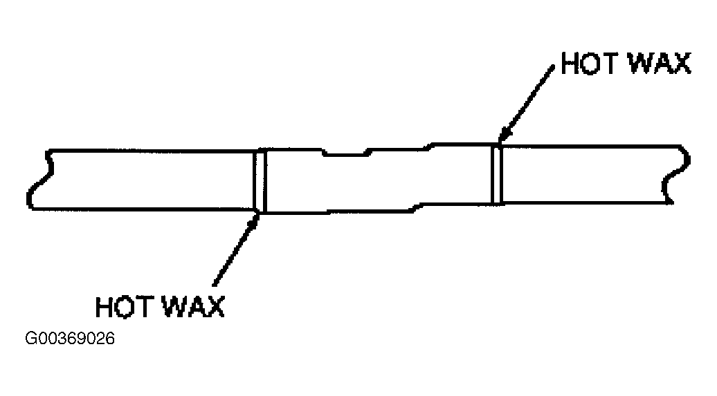 5. Using Rotunda Heat Gun (107-R0301) or equivalent, heat the entire length of the shrink tubing until the hot wax comes out of both ends. See Fig 5 . When the hot wax flows out of both ends, remove heat.