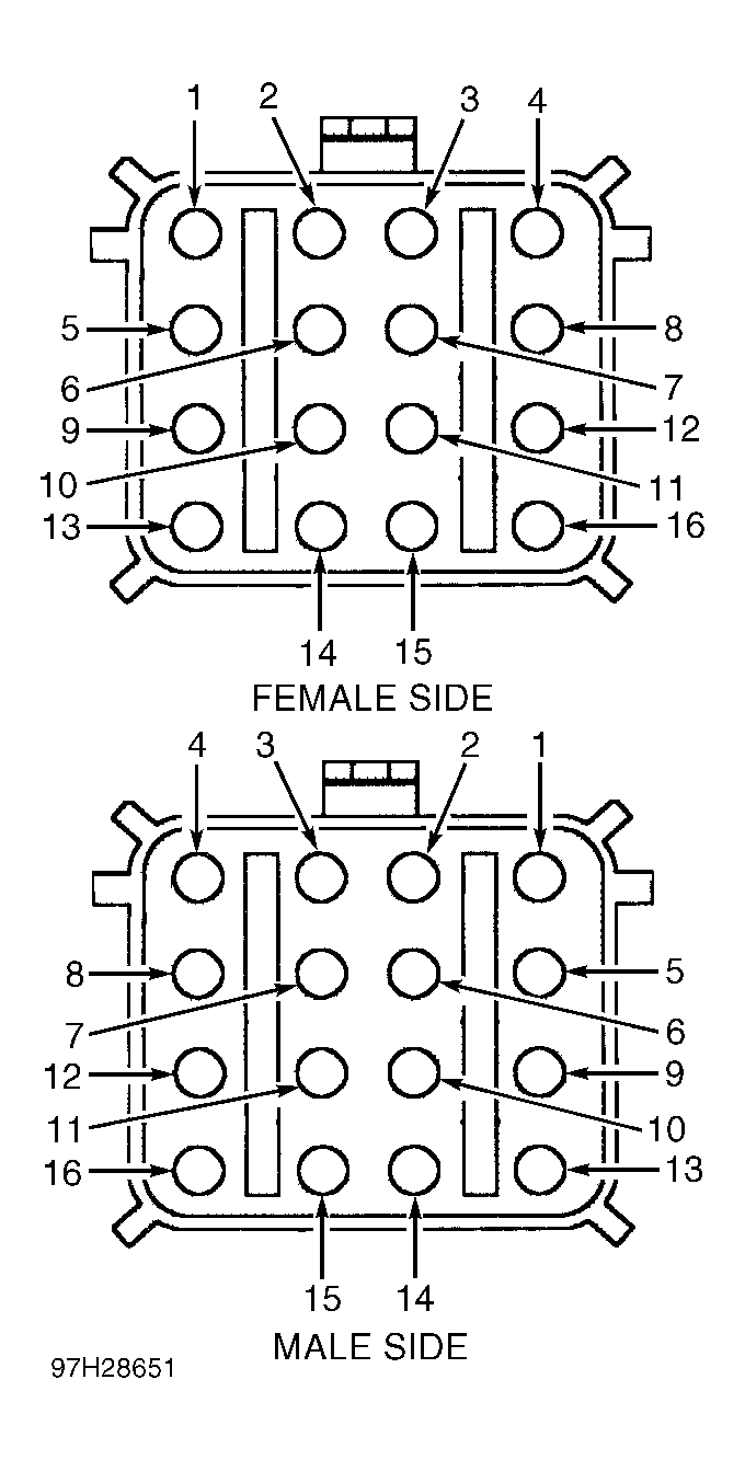 5. Measure resistance between PCM connector pin No. 16 and male side of harness connector C102 terminal No. 1 (Tan/Orange wire). If resistance is less than 5 ohms, perform QUICK TEST in TESTS W/CODES article in ENGINE PERFORMANCE section. If resistance is 5 ohms or more, repair circuit No. 914 (Tan/Orange wire) between PCM connector pin No. 16 and connector C102. Reconnect connectors. Repeat DATA LINK DIAGNOSTICS  under COMMUNICATION NETWORK DIAGNOSTICS.