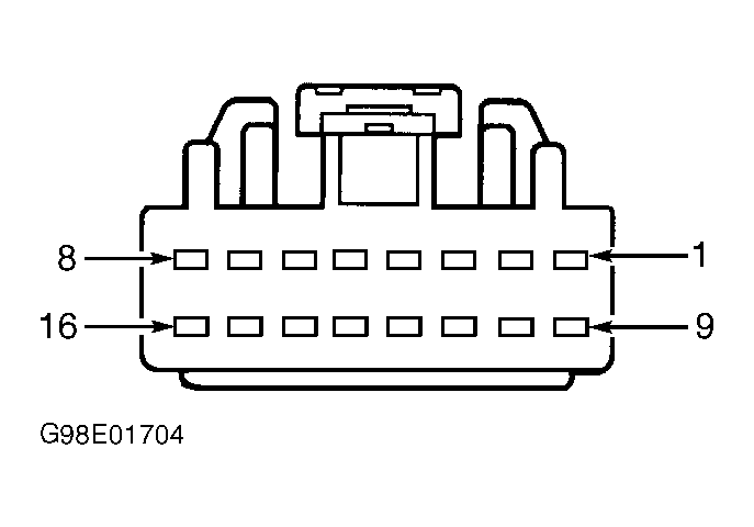 - Disconnect 16-pin harness connector C409 located in center front of trunk. Inspect harness connector for loose, damaged or corroded terminals. Repair harness connector as necessary and retest system for normal operation. If harness connector is okay, measure resistance in Pink/Light Blue wire between terminal No. 5 at RESCU module harness connector C448 and terminal No. 16 at female half of harness connector C409. See Fig 2