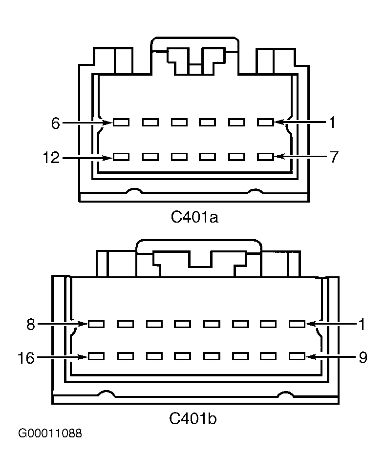 - Turn ignition switch to LOCK position. Disconnect RESCU module harness connector C401a, located in left side of trunk compartment. Disconnect NGS tester (if connected). Inspect harness connector for loose, damaged or corroded terminals. If problem exists, repair harness connector as necessary and retest system for normal operation. If problem does not exist, go to next step.