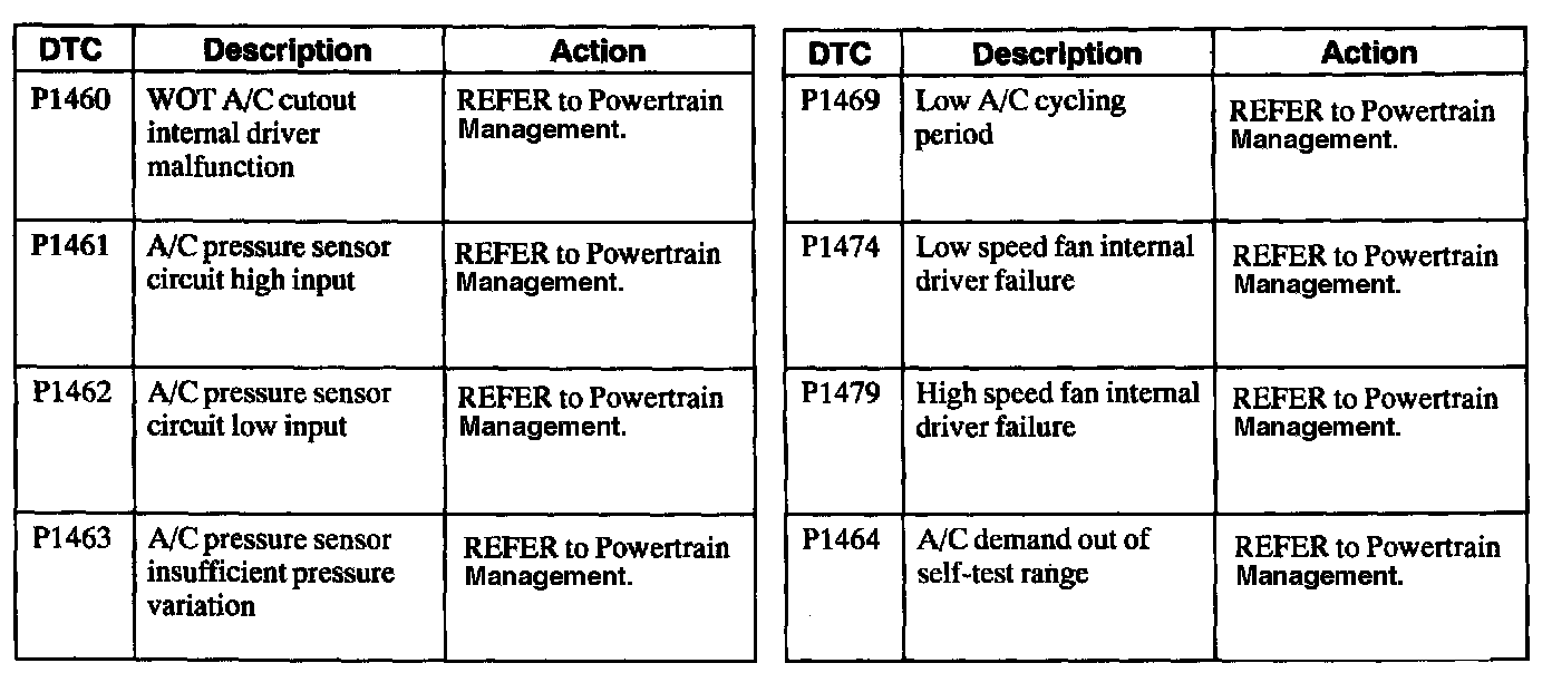 Powertrain Control Module Diagnostic Trouble Code (DTC) Index