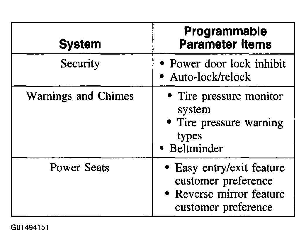 Home >> Lincoln >> 2000 >> Navigator RWD >> Repair and Diagnosis >> External Pages >> Different car >> Section 336 (Module Configuration) >> Diagnosis And Testing >> Module Configuration >> Programmable Parameters