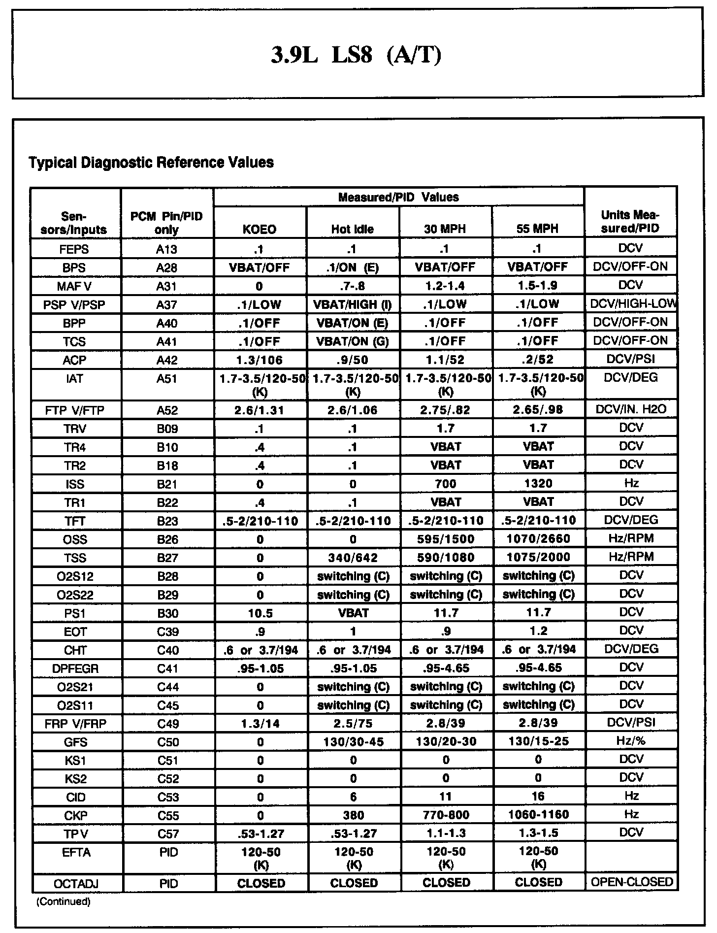 LS V8-3.9L VIN A