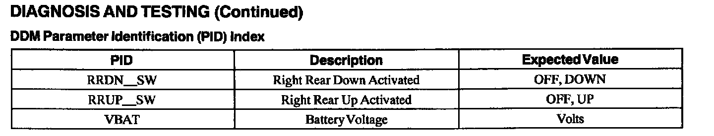 Driver Door Module (DDM) Parameter Identification (PID) Index