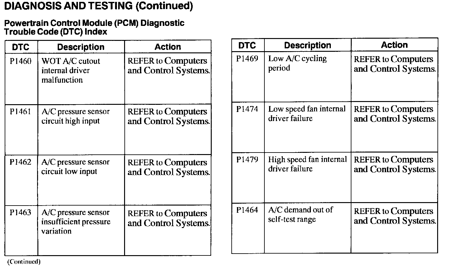 DTC Index P1460 - P1464: