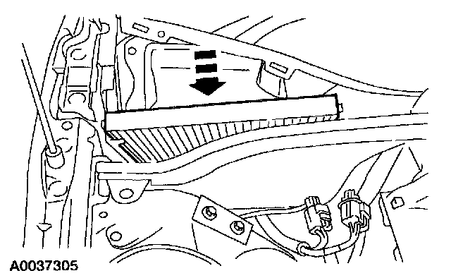 6. Remove the cabin air filter housing by lifting the outboard side then removing the housing.