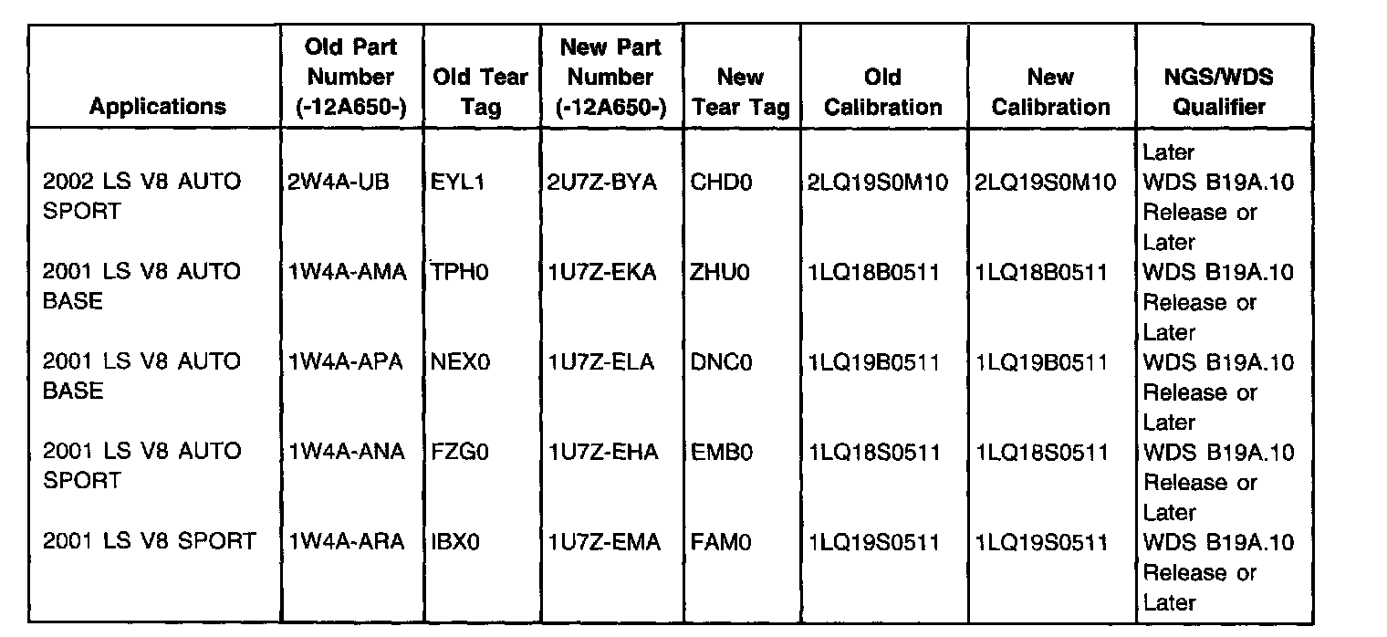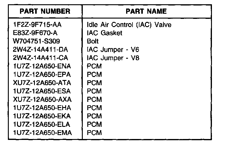 3. All 2000 and some 2001 model year vehicles will have a PCM included in the list. If the PCM part IS included in the list, refer to either "V6 Vehicles Requiring a New PCM" or "V8 Vehicles Requiring a New PCM" for the repair procedure.