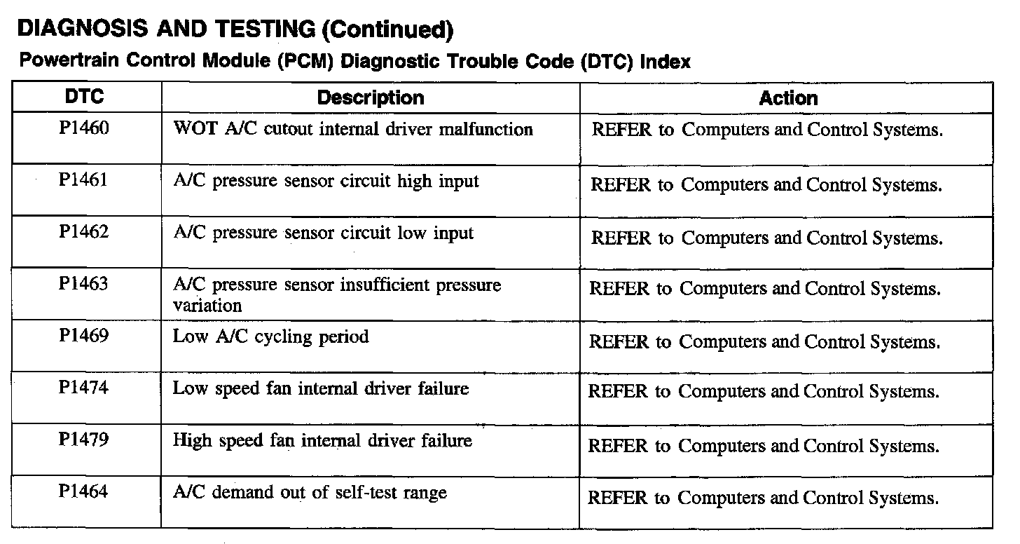 Powertrain Control Module (PCM) Diagnostic Trouble Code Index
