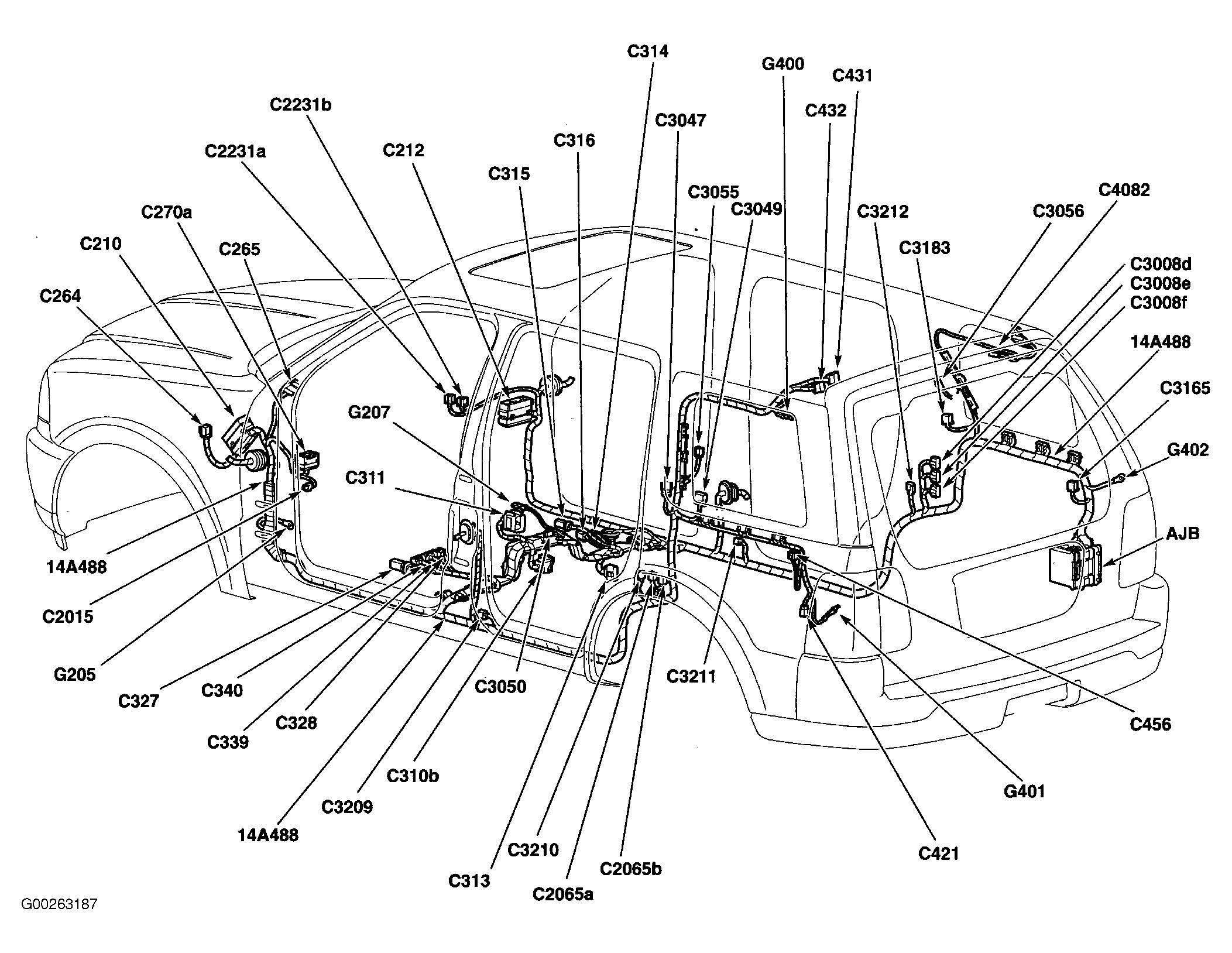 | Auxiliary Junction Box (AJB) | Right side of engine compartment, at fender apron. |