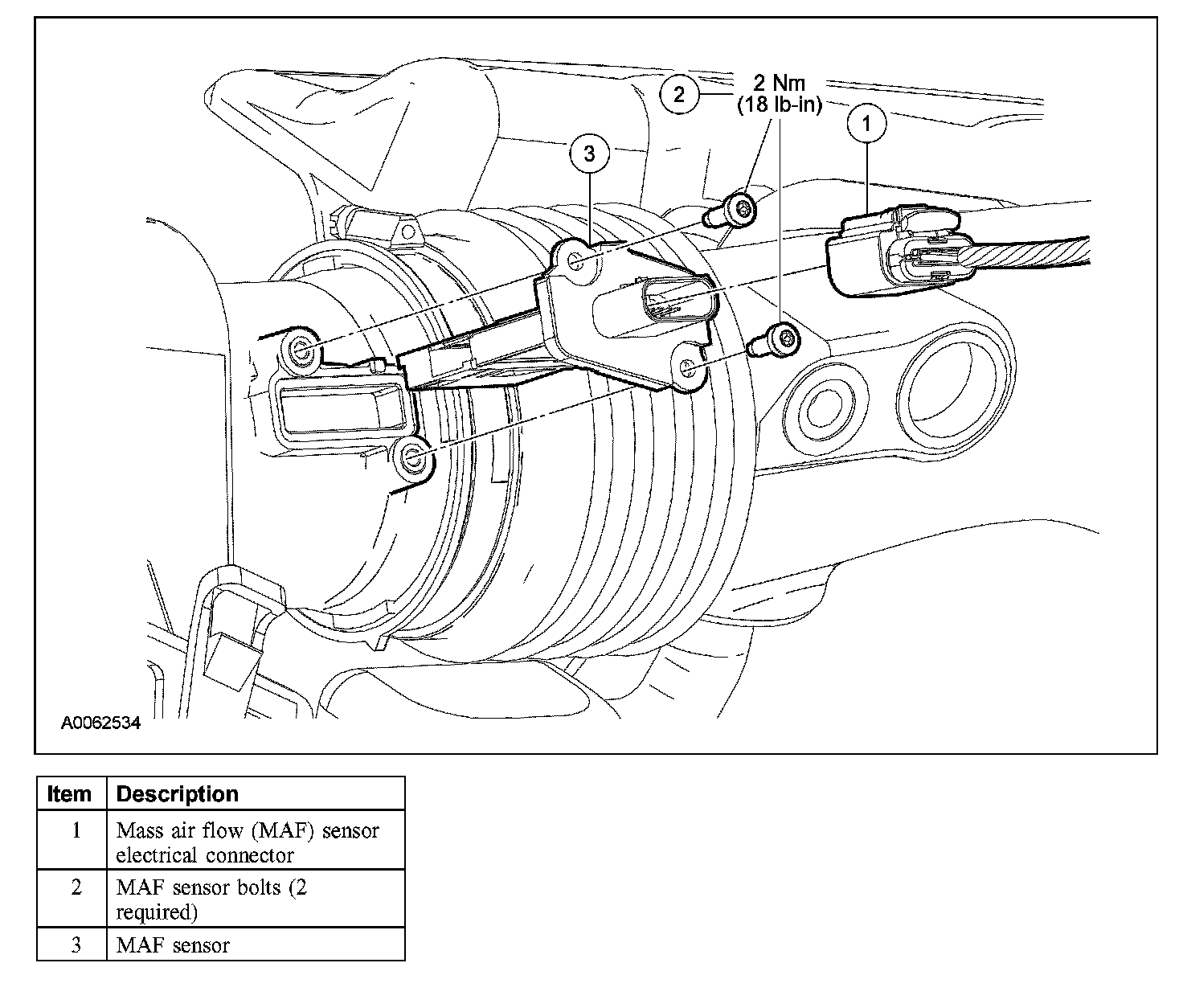 2. Disconnect the mass air flow (MAF) sensor electrical connector.