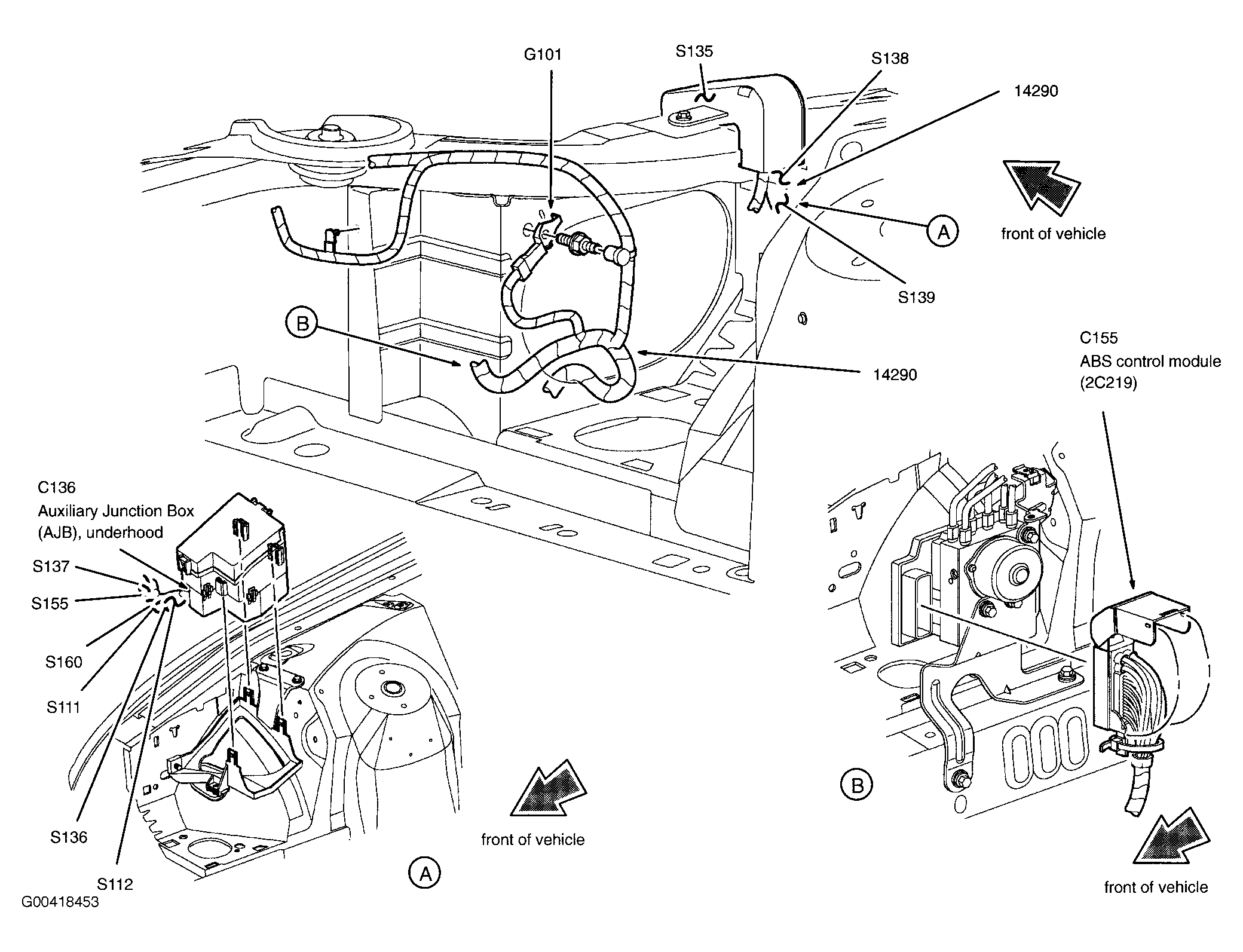| ABS Control Module | Right front side of engine compartment. See Figure . |