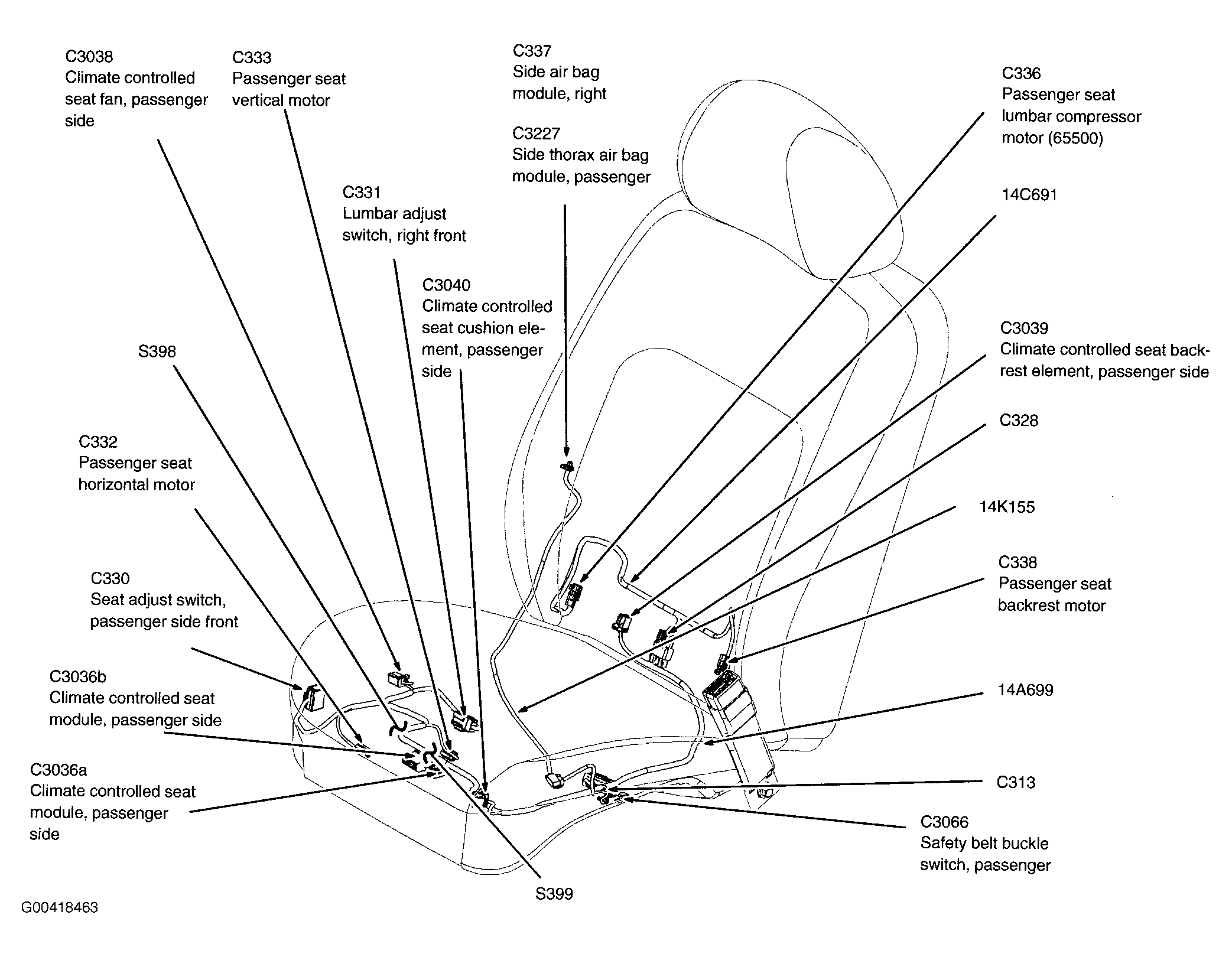 | Climate Controlled Seat Module (Passenger Side) | Under right front seat. See Figure . |