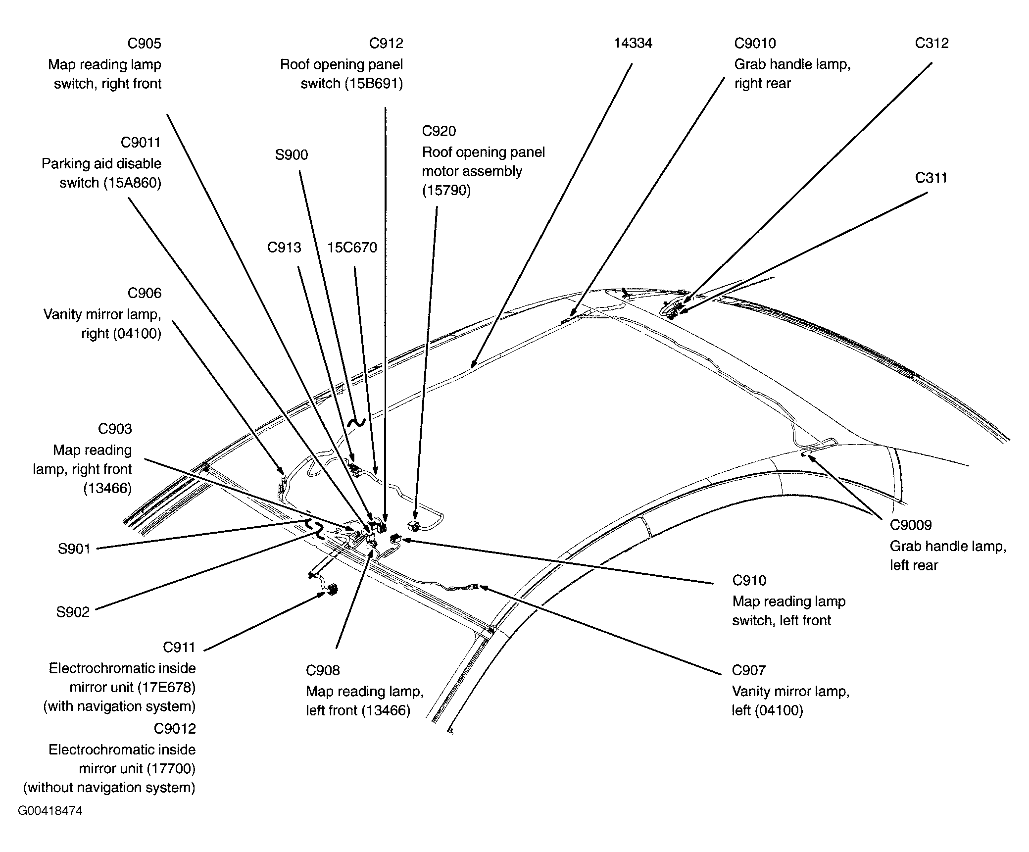 | Electrochromatic Inside Mirror Unit | In center of roof panel. See Figure . |