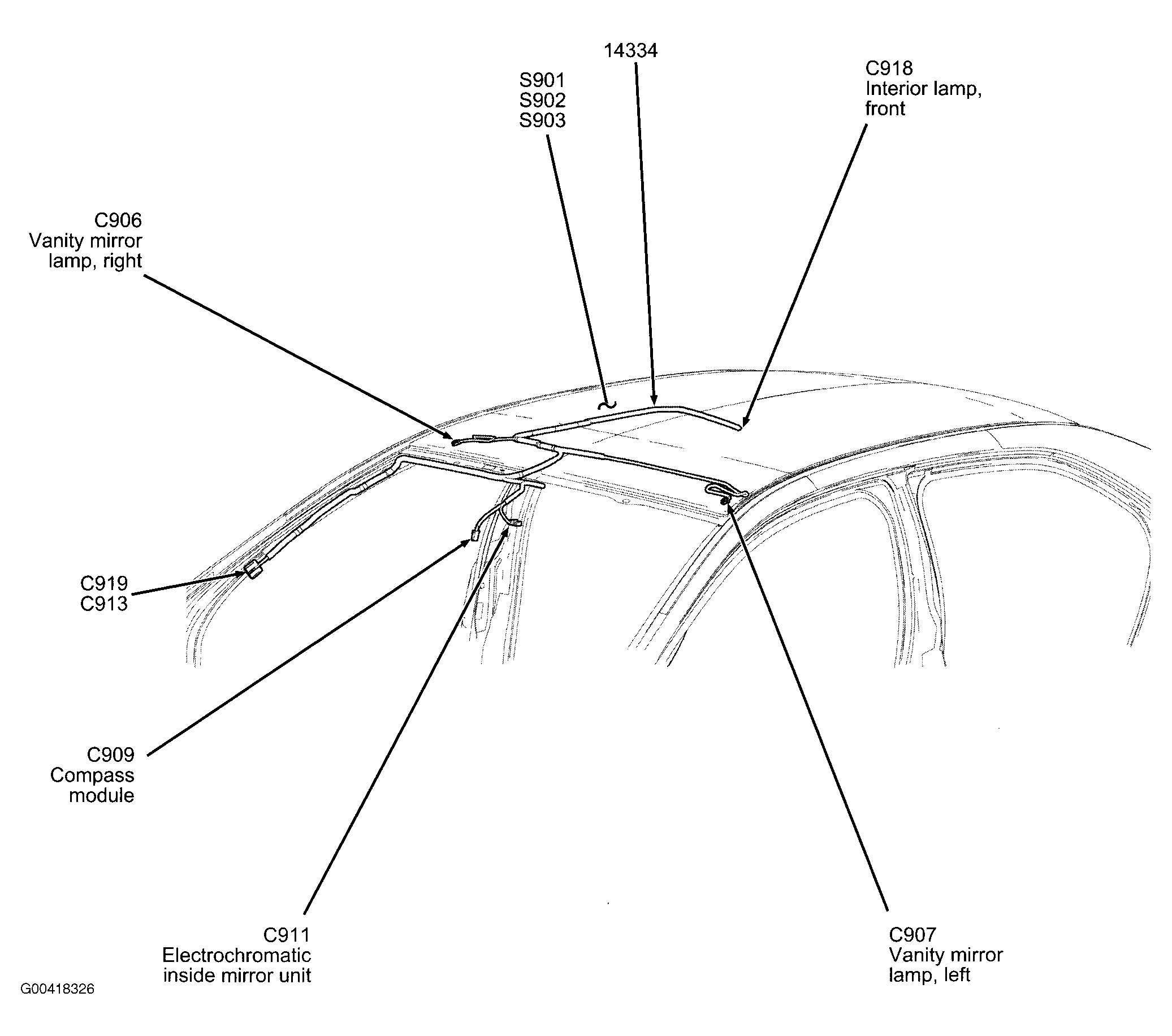 | Compass Module (W/ Moonroof) | In roof harness. See Figure. |